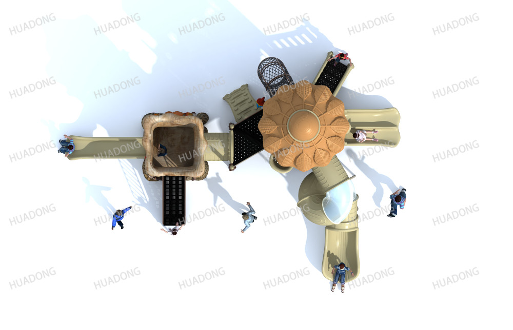 • 遠古部落系列雖然名字帶著“古”字,但是在設計細節(jié)處無不透露著藝術(shù)與創(chuàng)造性。當孩子在仿真樹中探索、冒險、嬉戲游玩時,就像穿越到古老的神秘森林;粗略的樹干包圍著他們,頭頂是高聳的茅草屋,觸感真實的枯枝走廊,還有隨處可見的小動物們…… 遠古部落系列旨在打造區(qū)別于其他系列帶給孩子們的新鮮感,讓孩子們找設計者打造的神秘世界中獲得冒險的樂趣。