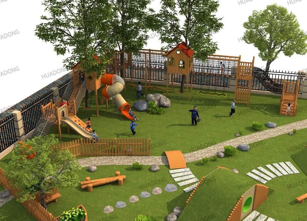 • 木質(zhì)拓展設(shè)施采用天然木材打造,設(shè)計(jì)注重安全與挑戰(zhàn)并重。通過懸掛橋、攀爬網(wǎng)、平衡木等多樣化的障礙元素,旨在提升參與者的體能、平衡感及團(tuán)隊(duì)協(xié)作能力,同時(shí)享受親近自然、挑戰(zhàn)自我的樂趣。