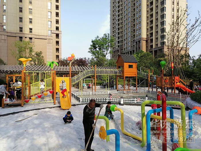 該項(xiàng)目采用非標(biāo)定制木制工藝,有滑梯、沙池、傳聲筒 、爬網(wǎng)已經(jīng)音樂系列的敲打設(shè)備,整體設(shè)計完美,符合房地產(chǎn)整體規(guī)劃。