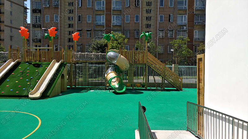 該案例根據(jù)幼兒園的實(shí)際場(chǎng)地進(jìn)行規(guī)劃的游樂場(chǎng),以小朋友的艾攀、愛爬、愛鉆等天性,該項(xiàng)目設(shè)置了爬網(wǎng)、木制滑梯、攀爬墻等游樂設(shè)備,整個(gè)項(xiàng)目設(shè)計(jì)美觀,實(shí)用性強(qiáng)深受當(dāng)?shù)匦∨笥训南矏邸?/p>
