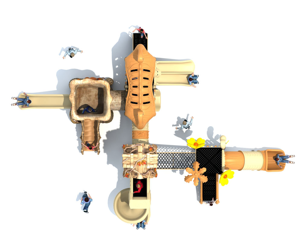 遠(yuǎn)古部落系列雖然名字帶著“古”字,但是在設(shè)計(jì)細(xì)節(jié)處無不透露著藝術(shù)與創(chuàng)造性。當(dāng)孩子在仿真樹中探索、冒險(xiǎn)、嬉戲游玩時(shí),就像穿越到古老的神秘森林;粗略的樹干包圍著他們,頭頂是高聳的茅草屋,觸感真實(shí)的枯枝走廊,還有隨處可見的小動(dòng)物們…… 遠(yuǎn)古部落系列旨在打造區(qū)別于其他系列帶給孩子們的新鮮感,讓孩子們找設(shè)計(jì)者打造的神秘世界中獲得冒險(xiǎn)的樂趣。
