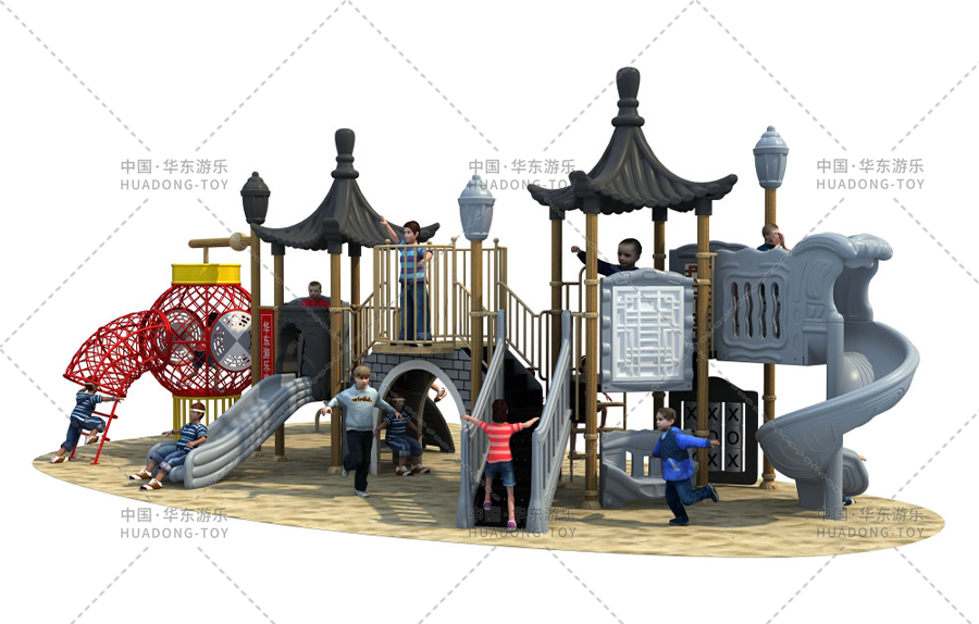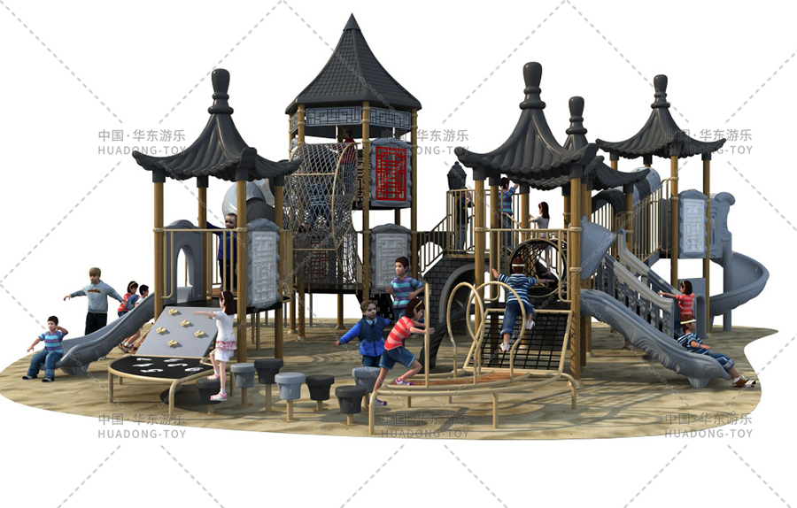 中國風(fēng)系列來之我們研發(fā)部開發(fā)一種中國特色一中國元素——-中國趣味。中國風(fēng)系列以蘇州園林與徽派建筑為靈感,溶入現(xiàn)代建筑簡潔、大方,明快與實用的風(fēng)格,利用青磚黛瓦的微派建筑,景象別致的蘇州園林,馬頭墻小青瓦亭臺樓閣,高低錯落,變化無窮。結(jié)合攀、爬、滑、鉆、蕩等功能,為孩子打造一個奇妙的游樂世界。孩子們穿梭其中,感受不一樣的體驗,積極培養(yǎng)孩子對中國傳統(tǒng)文化的熱愛,弘揚(yáng)中國傳統(tǒng)與親身體驗。