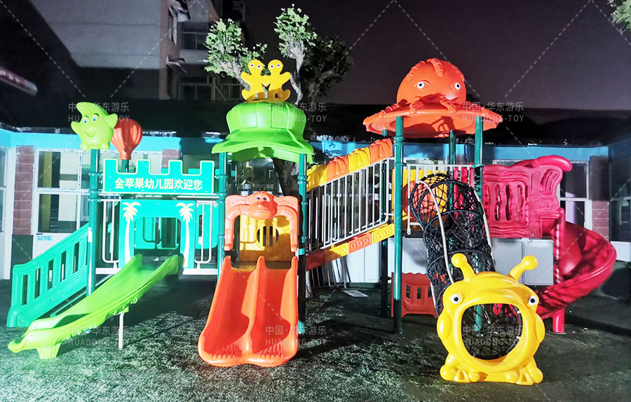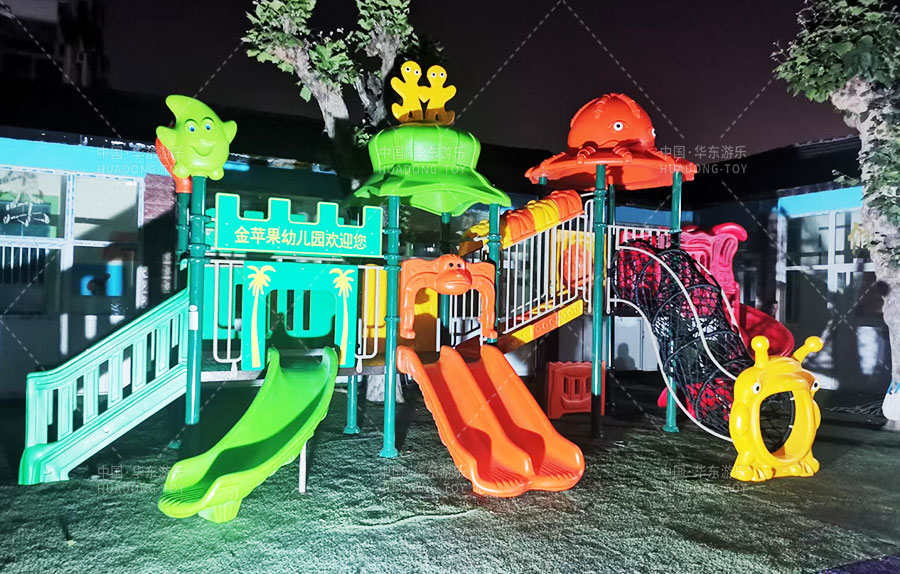 山東省濟南市歷城區(qū)金蘋果幼兒園是一家由教育局批準的幼兒園,主要提供學前教育的服務(wù)和托管,此次學校選用的是由華東游樂自主生產(chǎn)和研發(fā)的動物系列組合滑梯,該滑梯設(shè)置了網(wǎng)洞攀爬、S形滑梯、直行滑梯、爬梯等功能,獨特的動物系列設(shè)計風格深受廣大小朋友們的喜愛。