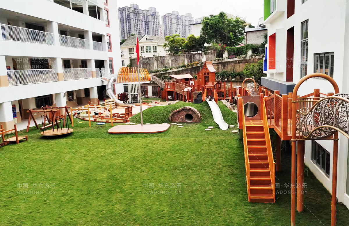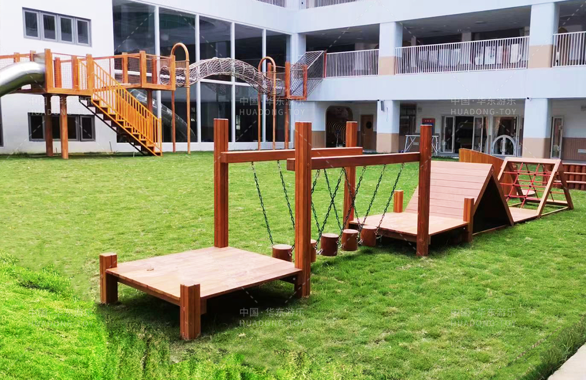 高峰幼兒園是一個(gè)專業(yè)的學(xué)前教育培訓(xùn)機(jī)構(gòu),此次選用的是華東游樂(lè)設(shè)計(jì)和生產(chǎn)的木制非標(biāo)定制的游樂(lè)設(shè)備,設(shè)計(jì)了具有攀爬網(wǎng)、鉆洞、秋千、木制拓展、木制小屋、不銹鋼滑梯等功能的游樂(lè)設(shè)備,豐富的功能、優(yōu)質(zhì)的設(shè)備、讓整個(gè)校園充滿了生機(jī)與活力。