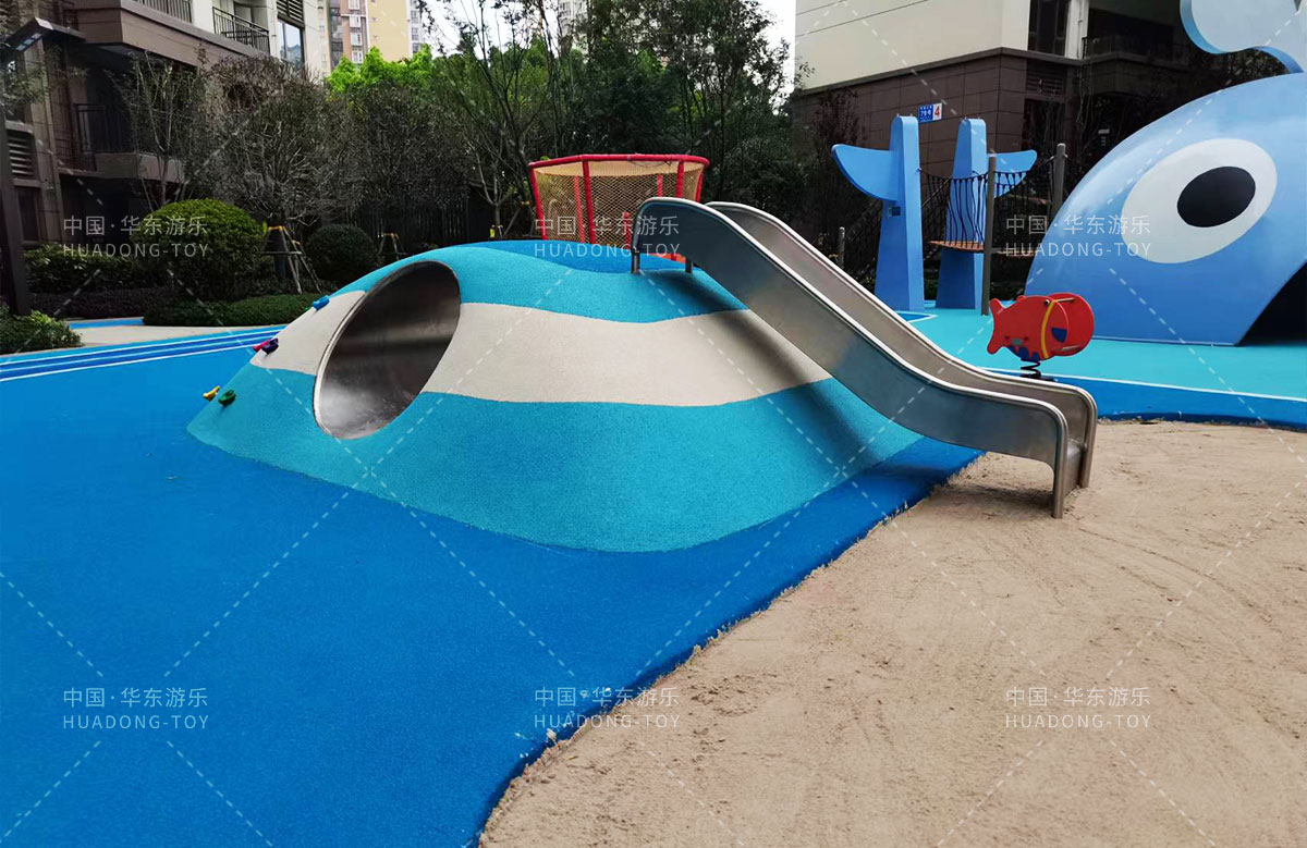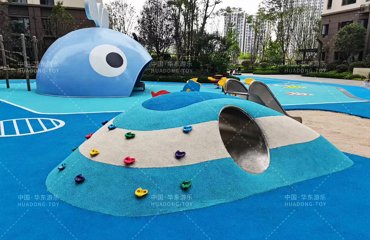 該項(xiàng)目采用的是以海洋為主題的兒童游樂園,整個(gè)項(xiàng)目以海洋里游蕩的大鯨魚為主要背景,設(shè)計(jì)了小朋友喜歡的滑梯、鉆洞、沙池、盤爬坡等游樂設(shè)備,為小朋友的生活學(xué)習(xí) 提供了一個(gè)很好的娛樂場(chǎng)所。