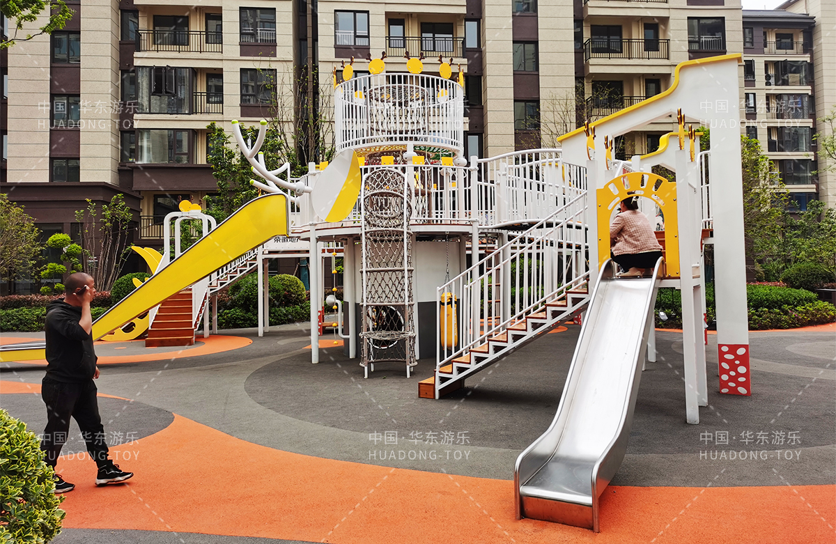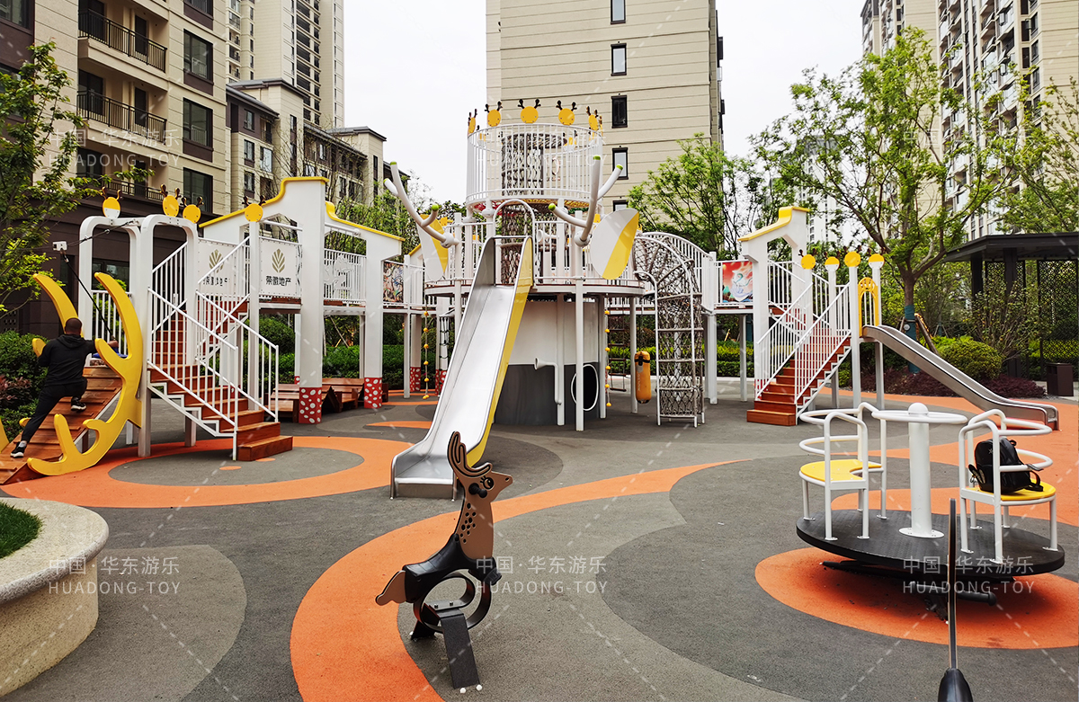 東方名府云著此次選用的是華東游樂自主研發(fā)和生產(chǎn)的無動力游樂設(shè)備,采用的是以麋鹿為主題的綜合性游樂園,整個游樂園分別設(shè)計了小朋友喜歡的兒童蹺蹺板、打擊樂器、兒童搖搖樂,以及和具備不銹鋼滑梯、攀爬網(wǎng)、攀爬繩、攀爬梯等功能的麋鹿組合滑梯等游樂設(shè)備。
