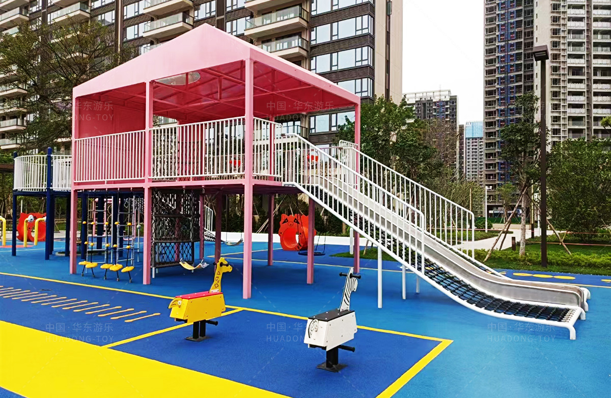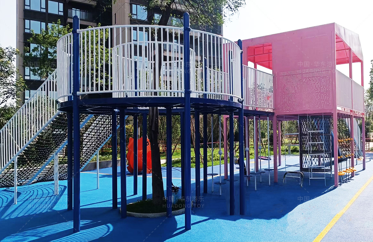 該房地產(chǎn)選用的是華東游樂設(shè)計(jì)和生產(chǎn)的非標(biāo)定制系列的游樂設(shè)備,分別設(shè)置了蹺蹺板、搖搖樂、鉆洞、傳聲筒、蝸牛主題組合滑梯,以及具有鉆洞、攀爬網(wǎng)、攀爬繩、攀爬梯等功能為一體的空中小屋的游樂設(shè)備,該游樂園的建設(shè)不僅僅豐富了小區(qū)人們的休閑生活,還為小朋友提供了一個(gè)休閑、娛樂的場所。