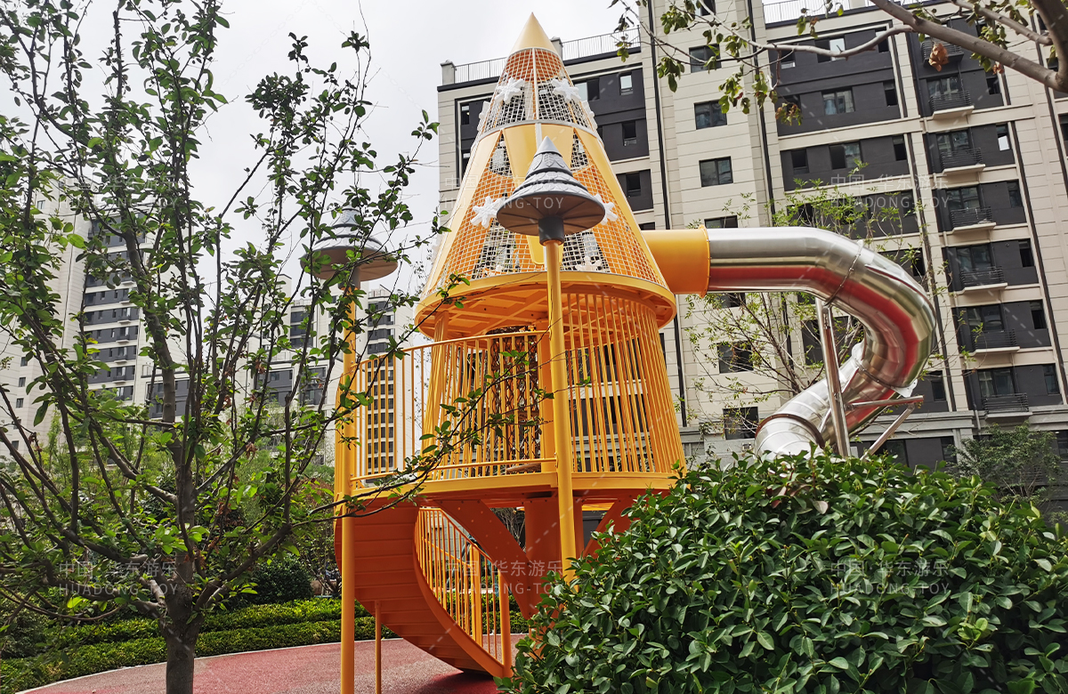 華潤置地萬象府選用的是華東游樂自主研發(fā)和設(shè)計(jì)的以森林的大樹為主題的非標(biāo)定制游樂設(shè)備,該設(shè)備是一款具備了攀爬網(wǎng)、旋轉(zhuǎn)走梯、旋轉(zhuǎn)滑筒等功能為一體的綜合性游樂設(shè)備,該游樂場的設(shè)置不僅僅為小朋友提供了一個(gè)很好的玩耍場所,也為生活在這里的人民提供了一個(gè)休閑娛樂的場所。