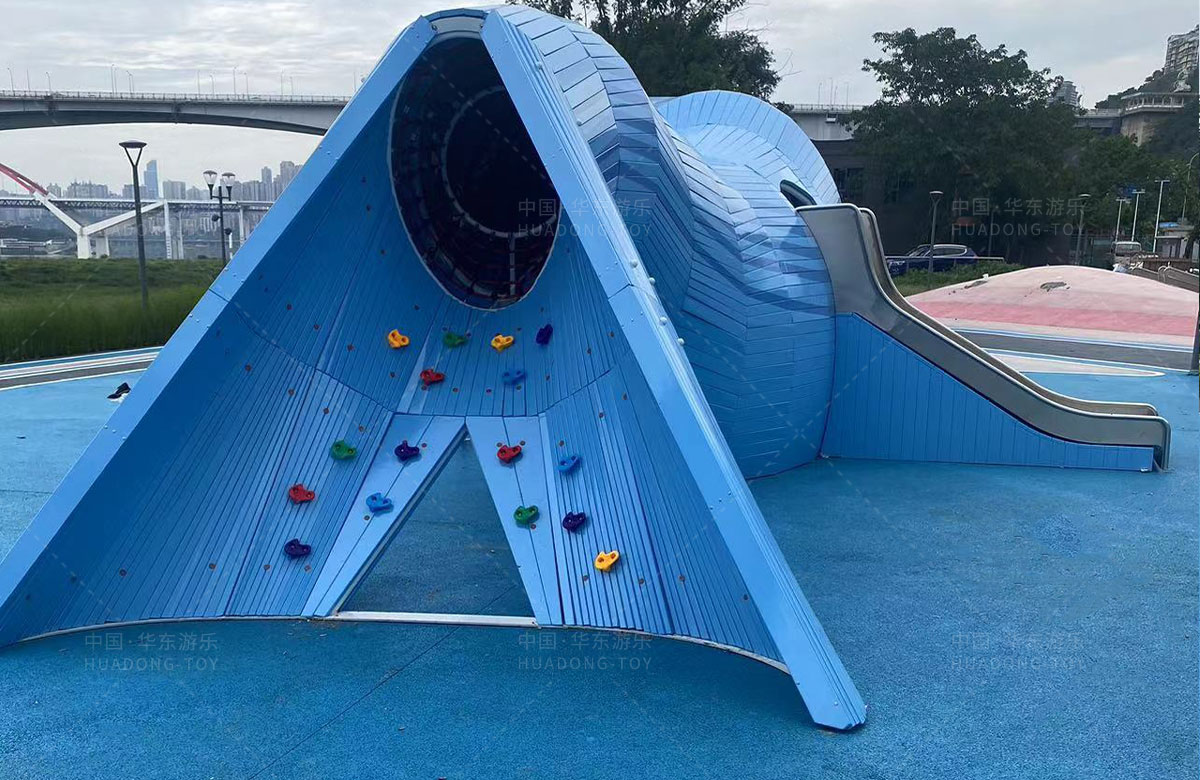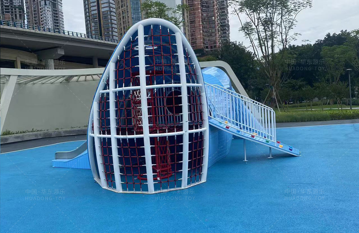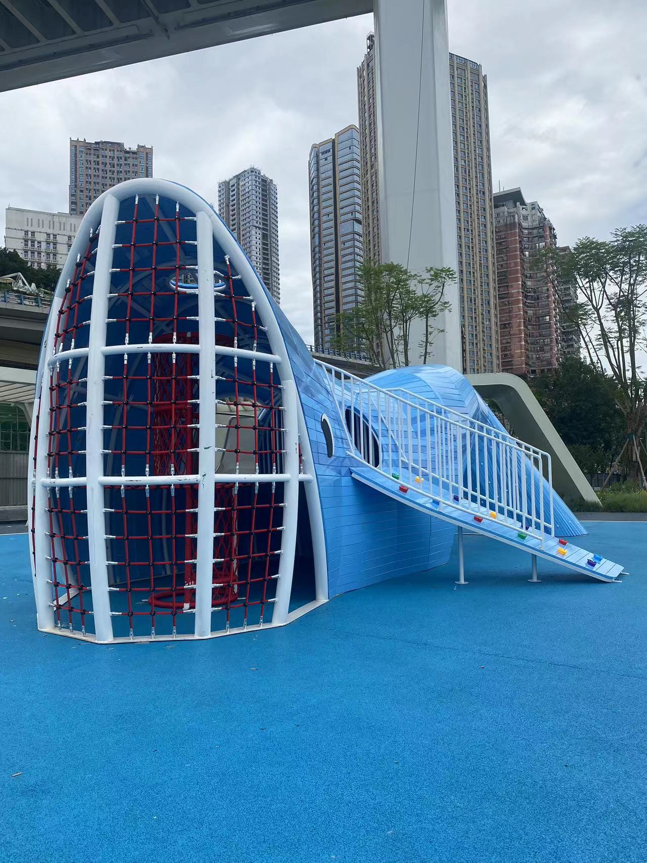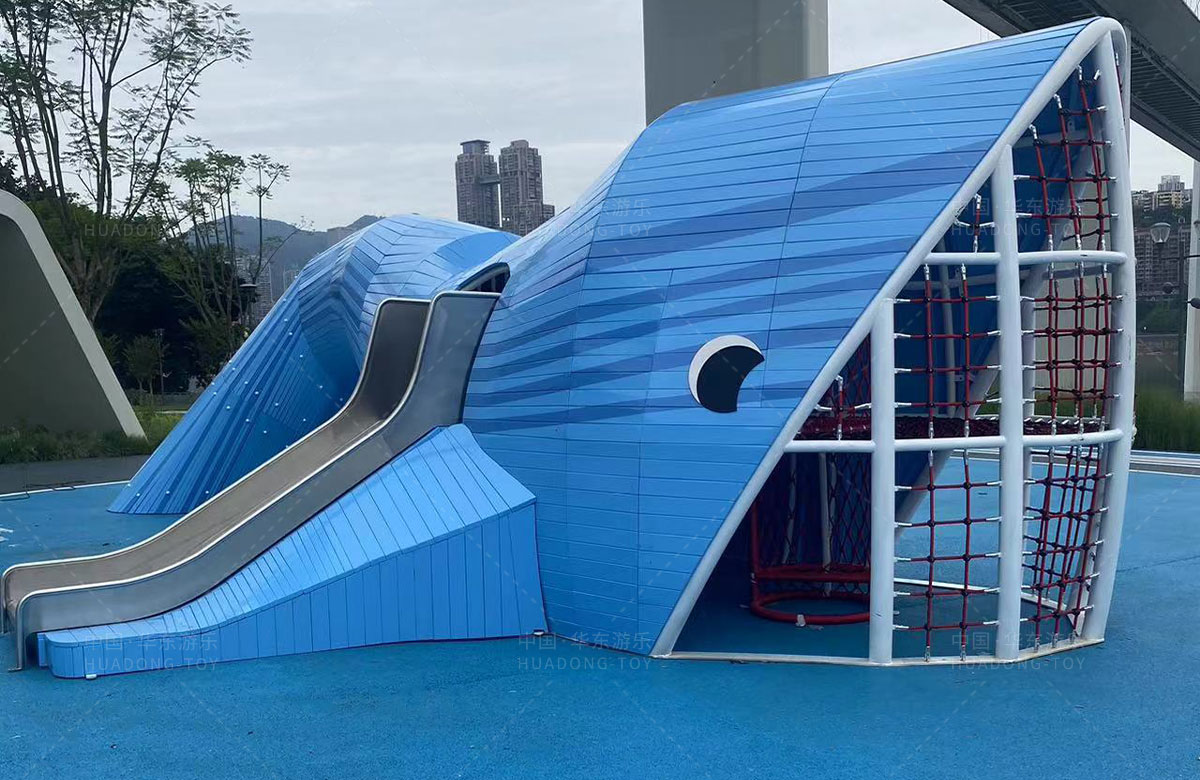 重慶市珊瑚公園是一個(gè)公益性的,專門為該區(qū)域游玩的人群提供休閑、娛樂的場所,此次選用的游樂設(shè)備是華東游樂自助研發(fā)和設(shè)計(jì)的以大鯊魚為主的非標(biāo)定制設(shè)備,具備了攀爬網(wǎng)、攀爬墻、鉆洞、不銹鋼滑梯等功能。