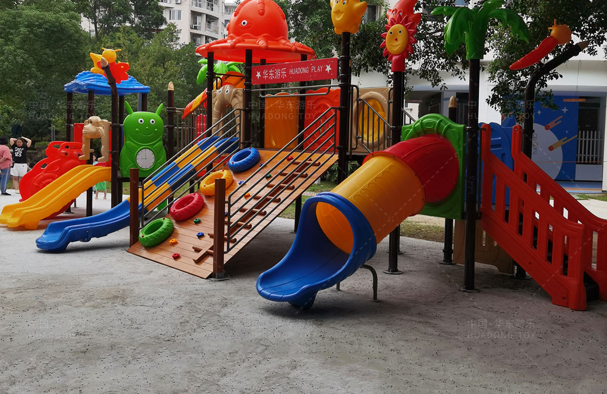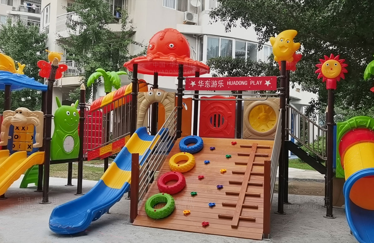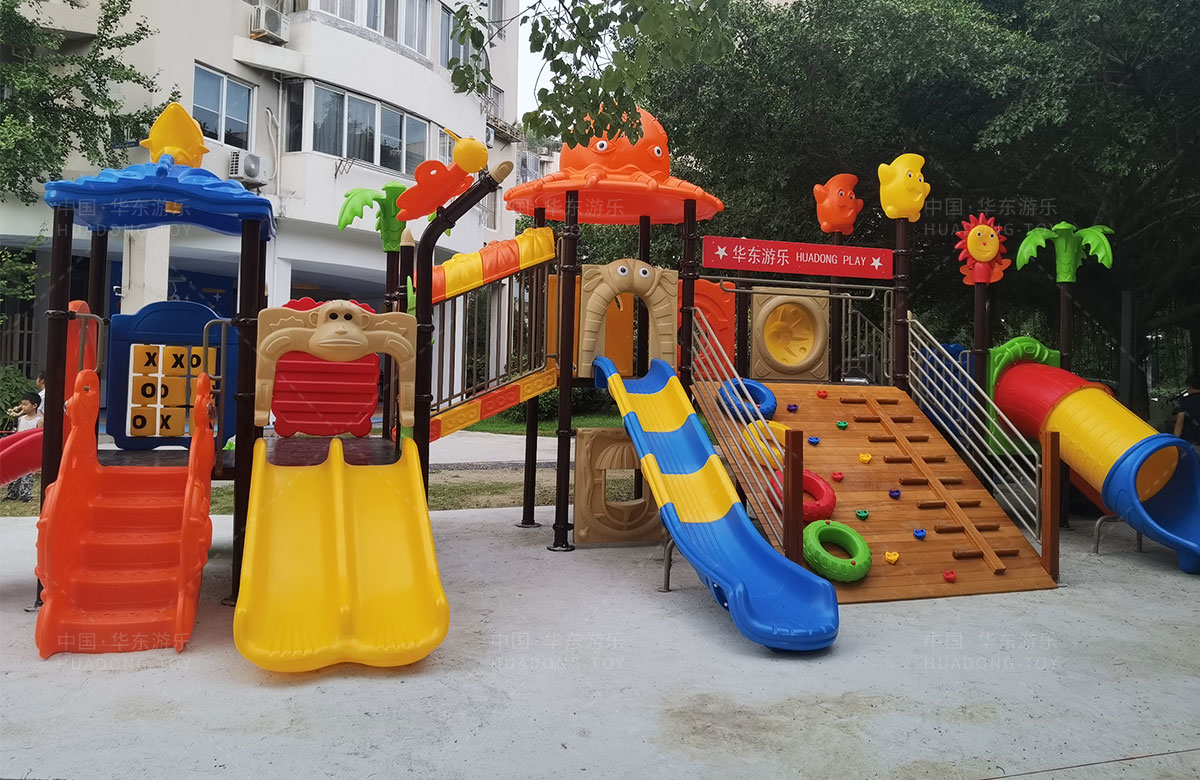 該小區(qū)選用的是華東游樂自主研發(fā)和設(shè)計(jì)的大自然系列組合滑梯,是一款具備了攀爬網(wǎng)、攀爬梯、直行滑梯、滑筒等功能為一體的綜合性游樂設(shè)備,能夠很好的為小朋友提供休閑娛樂的場(chǎng)所。