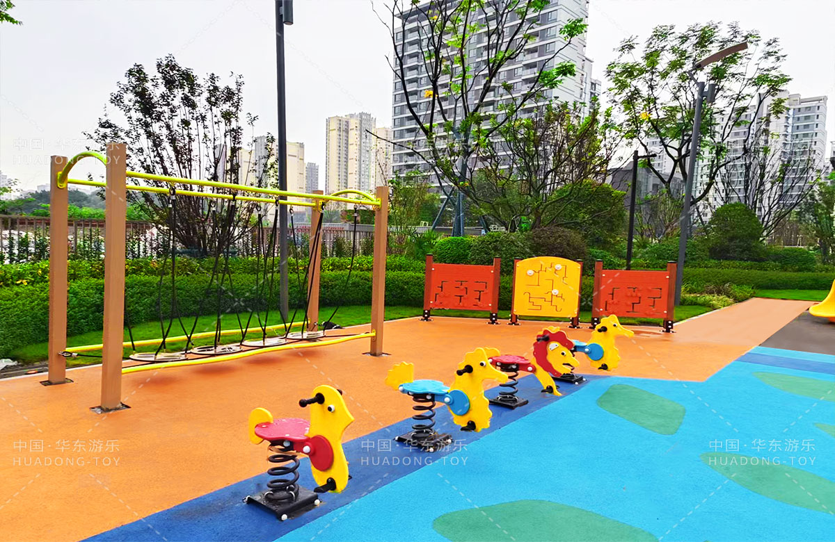 四川省成都市新城林嶼溪選用的是華東游樂自主研發(fā)和設計的非標定制系列的游樂設備,為了更多讓小朋友們有一個玩耍的場地,整個游樂場分別設計了兒童搖搖樂、兒童秋千、成人健身器、趣味迷宮、平衡吊橋、旋轉(zhuǎn)椅、象鼻組合滑梯等游樂設備。