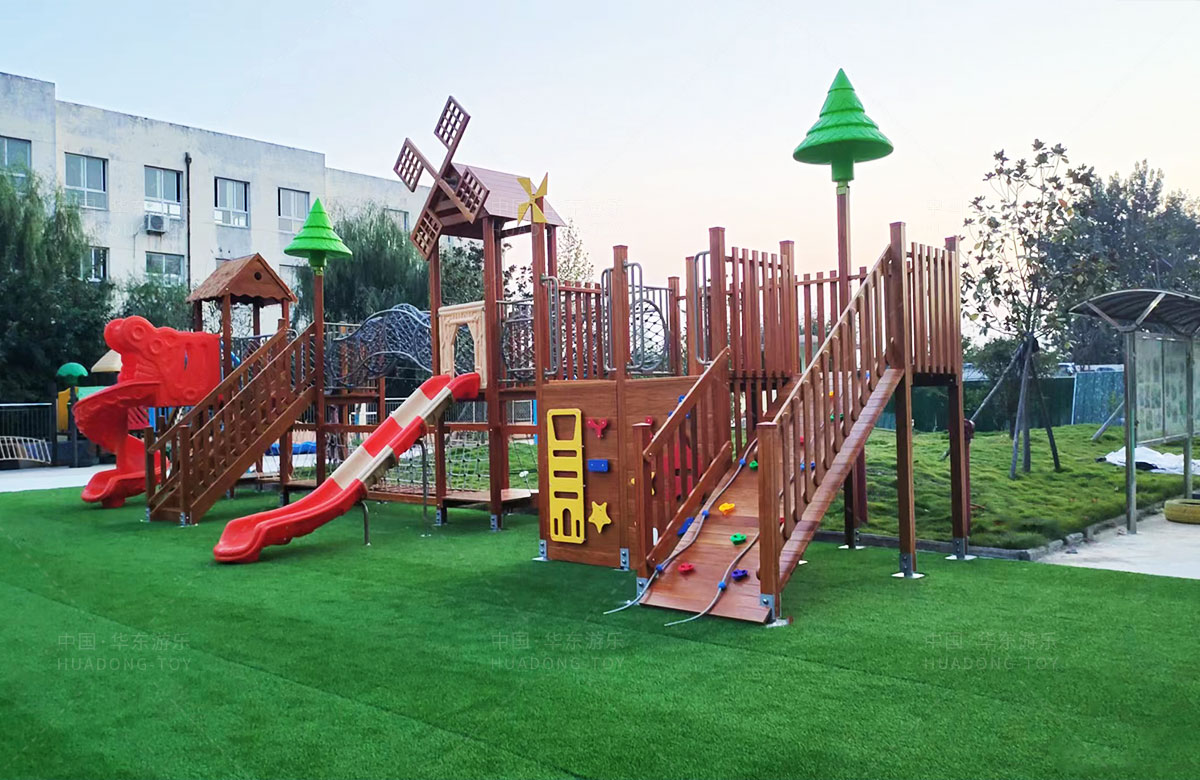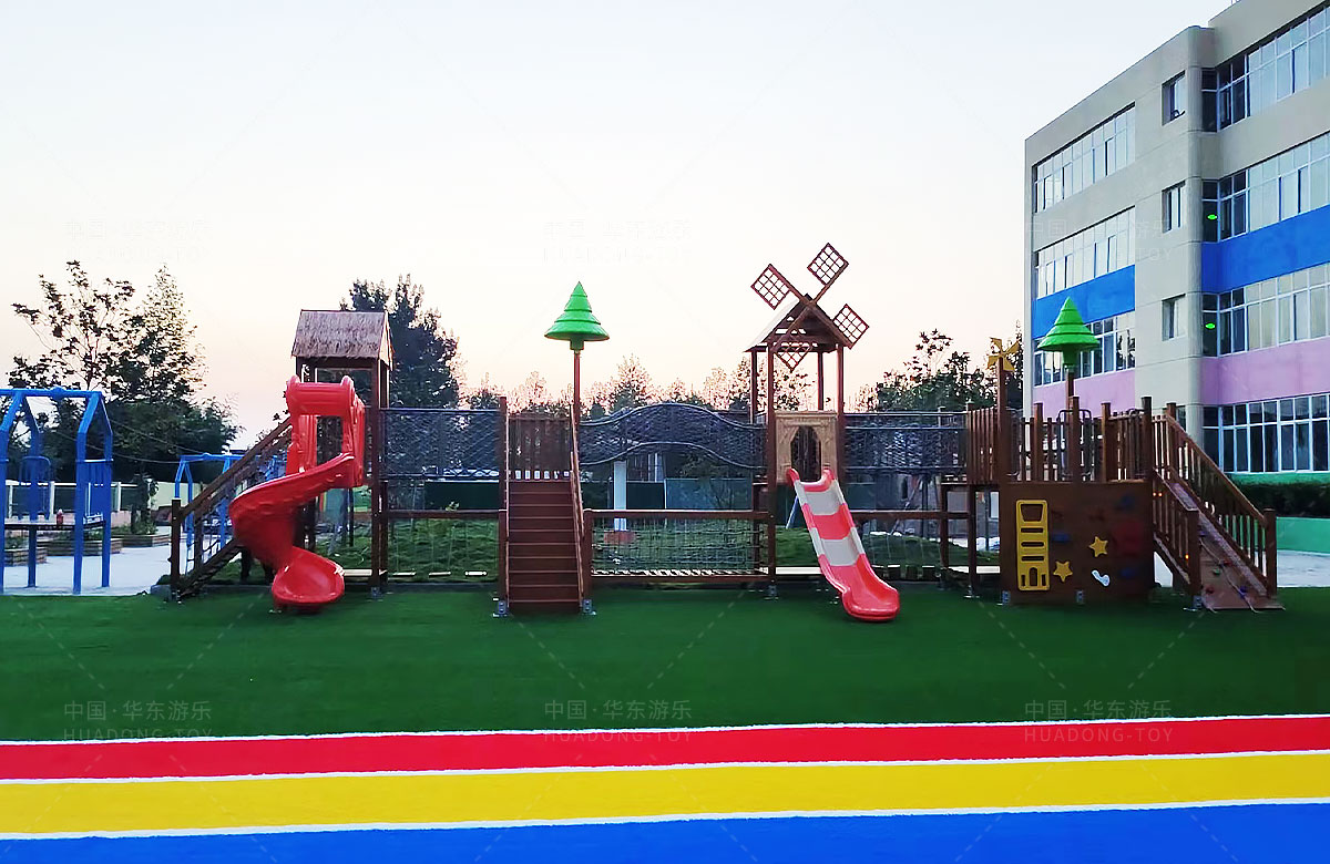 團(tuán)林鎮(zhèn)中心幼兒園是一所專(zhuān)業(yè)性的學(xué)期教育學(xué)校,此處選用的是華東游樂(lè)自主研發(fā)和設(shè)計(jì)的魔法屋系列組合滑梯和木制拓展游樂(lè)設(shè)備,具備了攀爬、鉆洞、滑梯、攀爬網(wǎng)、攀爬梯等功能為一體,不僅僅為小朋友提供了一個(gè)很好的游樂(lè)環(huán)境,也為老師的教學(xué)提供了幫助。