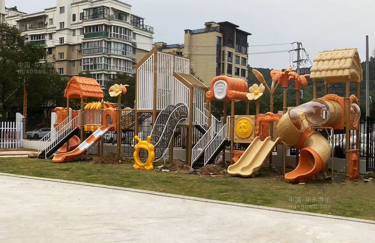 永嘉縣童真幼兒園是一家專業(yè)的學(xué)前培訓(xùn)學(xué)校,此次選用的兒童游樂設(shè)備是華東游樂自主研發(fā)和設(shè)計的大型戶外組合滑梯,該滑梯是一款具備了攀爬網(wǎng)、大型滑筒、旋轉(zhuǎn)滑梯、直行走梯、雙人滑梯等功能為一體的綜合性游樂設(shè)備。
