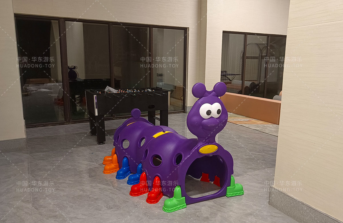 該項(xiàng)目選用的是華東游樂生產(chǎn)的室內(nèi)淘氣堡系列產(chǎn)品,整套設(shè)備集合了攀爬網(wǎng)、鉆洞、攀爬梯、旋轉(zhuǎn)滑筒等功能,除此之外還設(shè)置了小朋友們喜歡的毛毛蟲鉆洞,兒童臺(tái)球、乒乓球、桌面足球等設(shè)備,讓整個(gè)售樓處變得更加的充滿生機(jī)與活力。