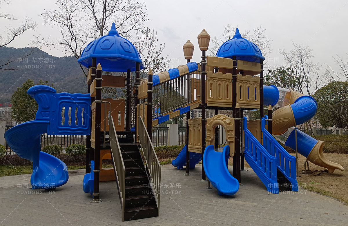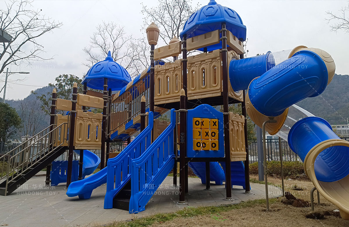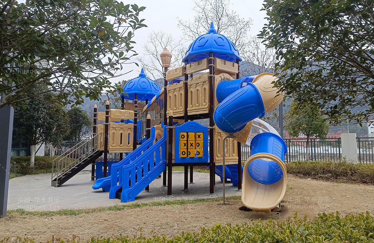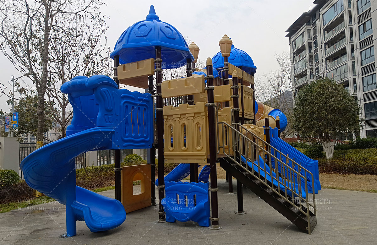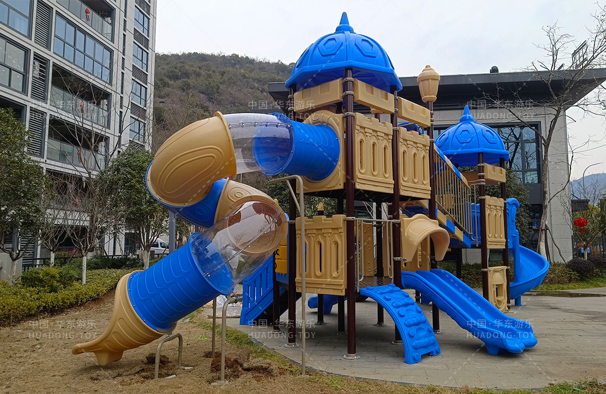 該小區(qū)選用的是華東游樂自主研發(fā)和設(shè)計的別墅屋系列組合滑梯,該滑梯具有顏色艷麗、使用壽命長、功能齊全等特點,深受孩子們和客戶的喜愛。