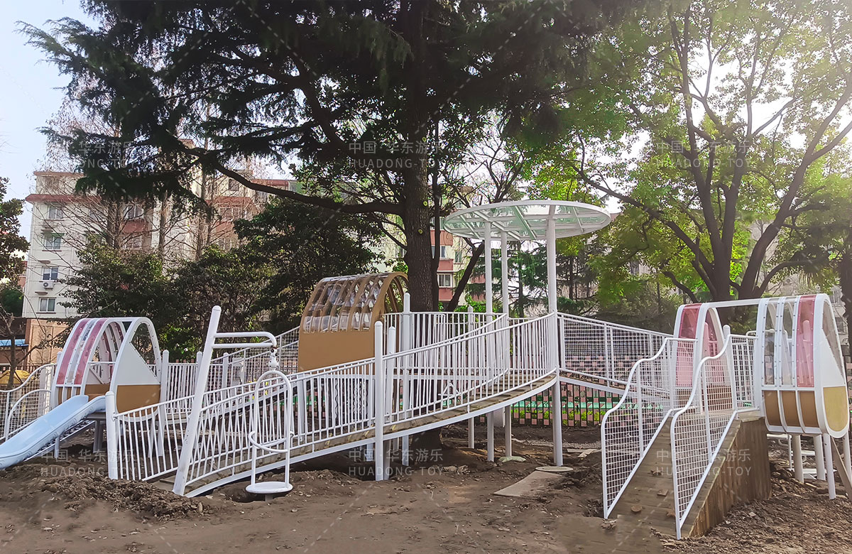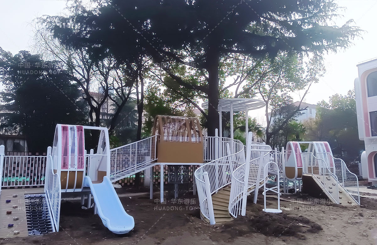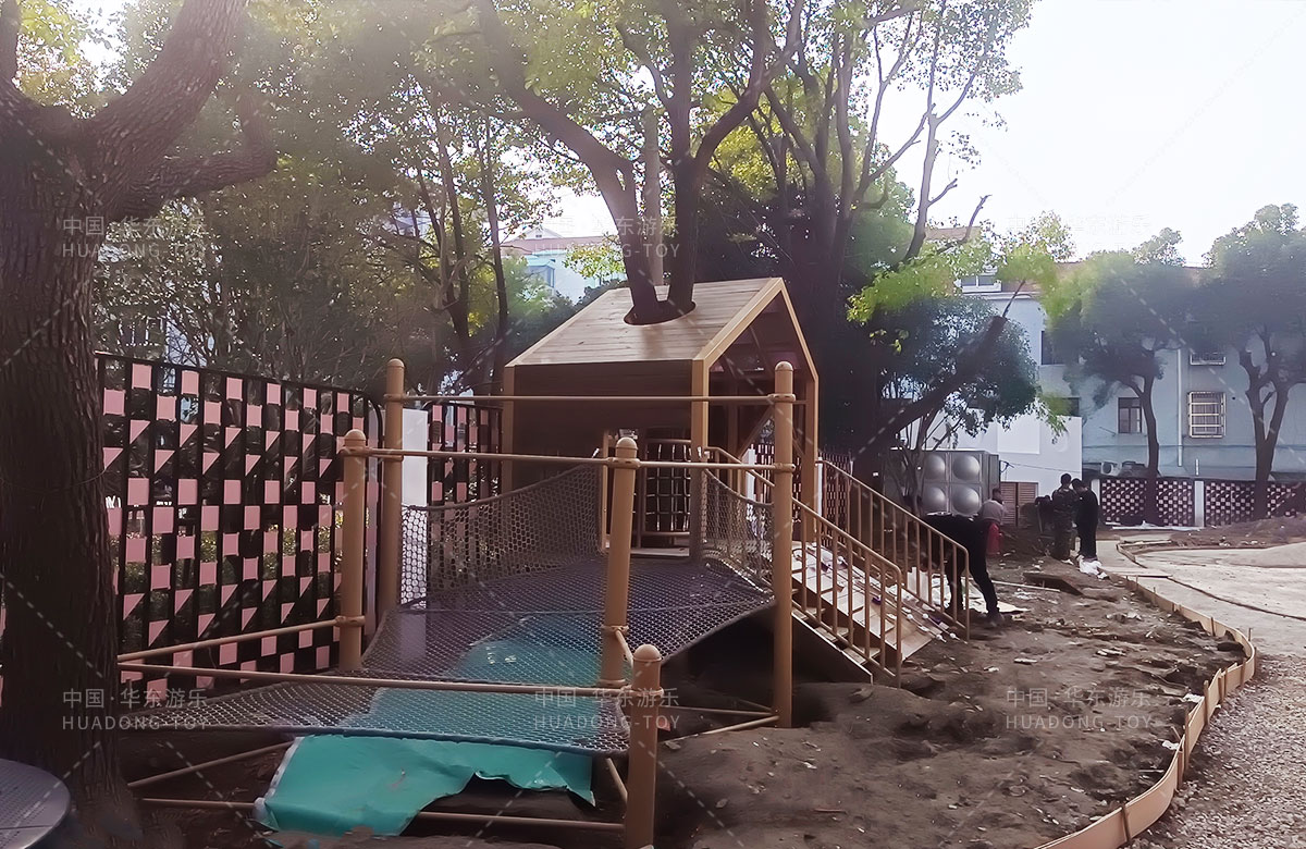 虹口區(qū)實(shí)驗(yàn)幼兒園簡(jiǎn)介創(chuàng)建于1993年9月。1994年定為一級(jí)一類幼兒園。兒園具有現(xiàn)代化的設(shè)施和美麗童趣的園舍??傉嫉孛娣e4800多平方米。建設(shè)面積3000多㎡。綠化面積1800多㎡。 此次幼兒園游樂項(xiàng)目選擇的是華東游樂自主研發(fā)和設(shè)計(jì)的一款綜合性木質(zhì)系列非標(biāo)定制產(chǎn)品,不僅功能齊全,主體性也非常的適合幼兒園的場(chǎng)景設(shè)置。