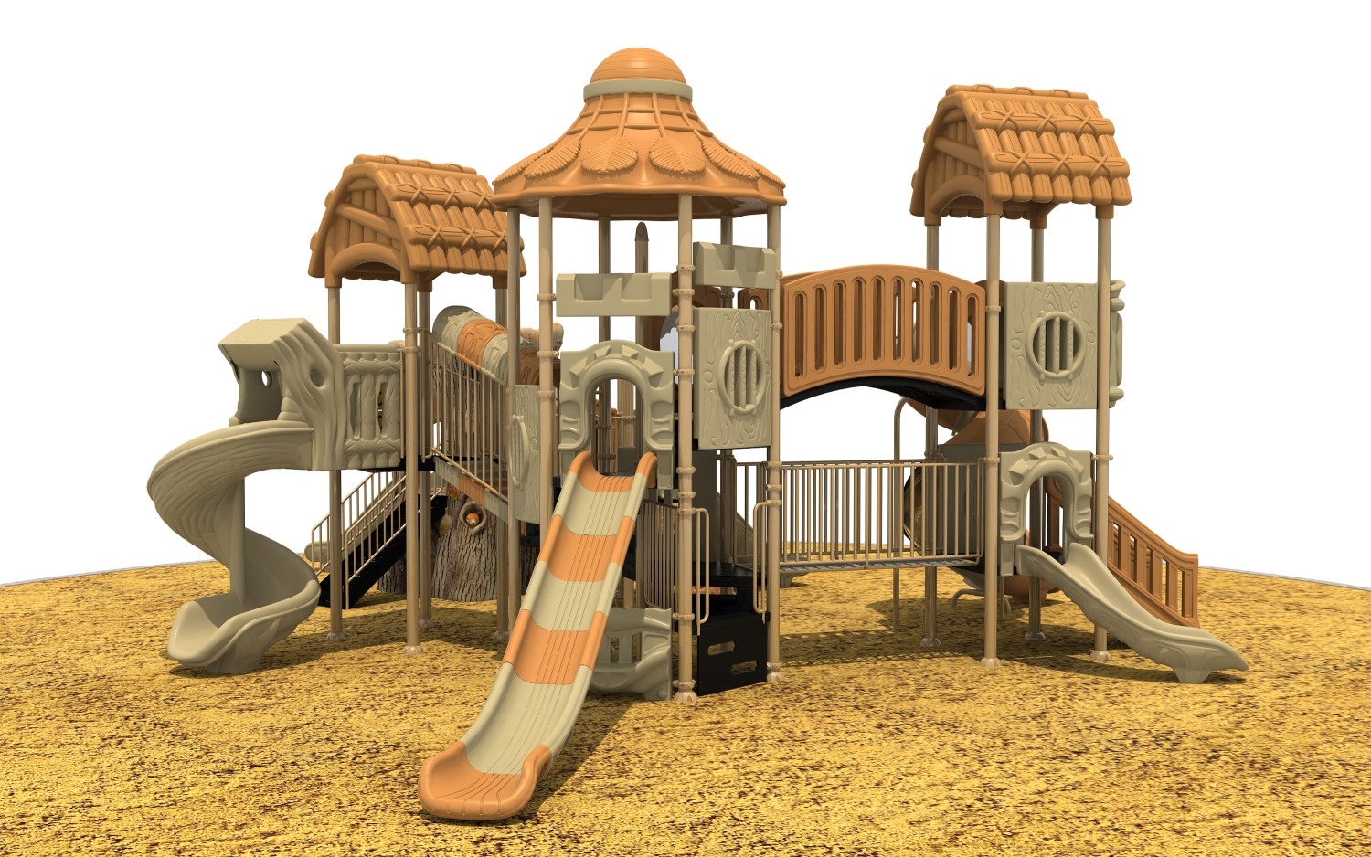 遠(yuǎn)古部落系列雖然名字帶著“古”字,但是在設(shè)計(jì)細(xì)節(jié)處無不透露著藝術(shù)與創(chuàng)造性。當(dāng)孩子在仿真樹中探索、冒險(xiǎn)、嬉戲游玩時(shí),就像穿越到古老的神秘森林;粗略的樹干包圍著他們,頭頂是高聳的茅草屋,觸感真實(shí)的枯枝走廊,還有隨處可見的小動(dòng)物們…… 遠(yuǎn)古部落系列旨在打造區(qū)別于其他系列帶給孩子們的新鮮感,讓孩子們找設(shè)計(jì)者打造的神秘世界中獲得冒險(xiǎn)的樂趣。