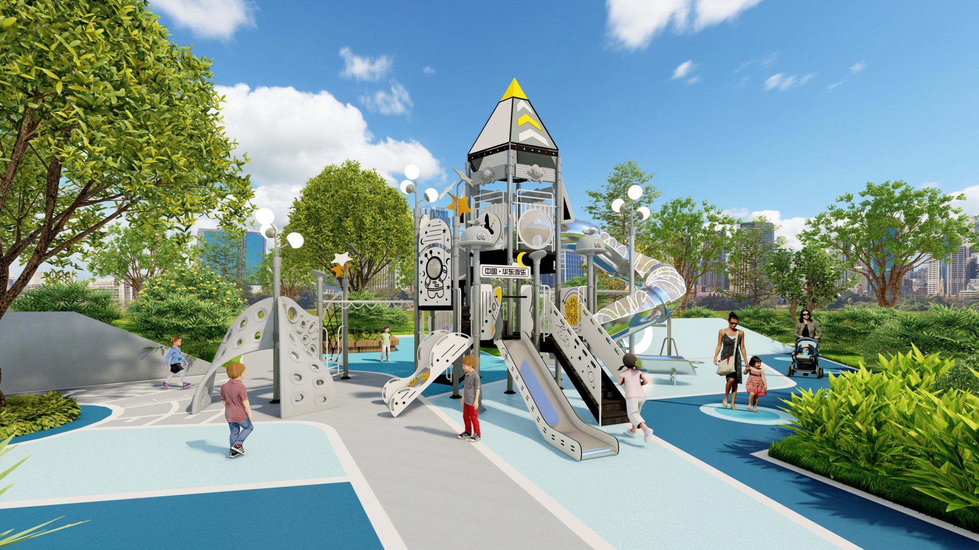 主題公園、學(xué)校、房地產(chǎn)小區(qū)、市政廣場、超市、酒店等