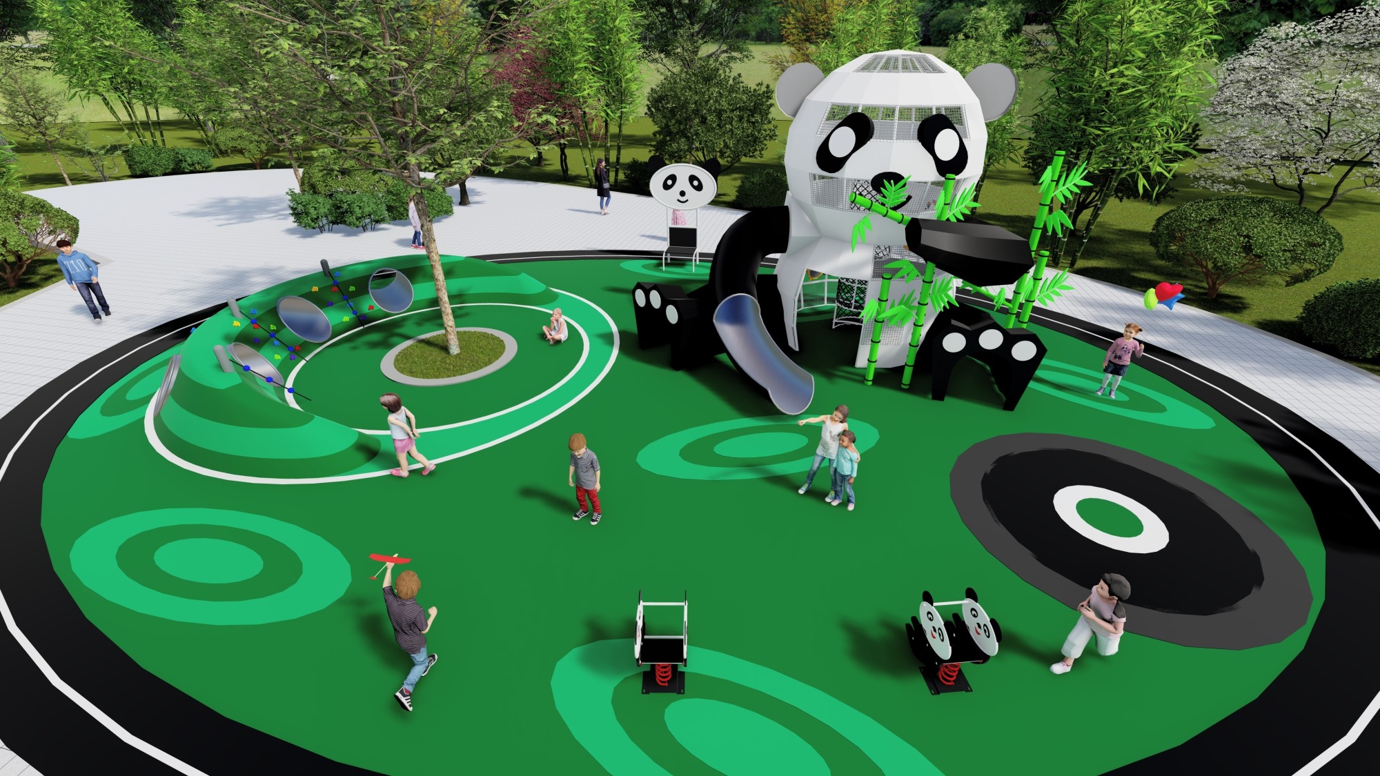 靈感來(lái)源于我國(guó)大熊貓,被譽(yù)為“中國(guó)國(guó)寶”,喜歡吃竹子。大大的黑眼圈,胖嘟嘟的身體。設(shè)計(jì)者利用這一形象,將可愛(ài)的大熊貓?jiān)O(shè)計(jì)成雙手抱著竹子,再搭配黑白兩色,使形象變的活潑可愛(ài)。將熊貓的雙手設(shè)計(jì)成過(guò)道來(lái)增加玩具的功能。使熊貓不僅具有觀賞價(jià)值,還能讓孩子們玩的開(kāi)心。讓孩子走進(jìn)大熊貓的世界,與大熊貓游玩吧!