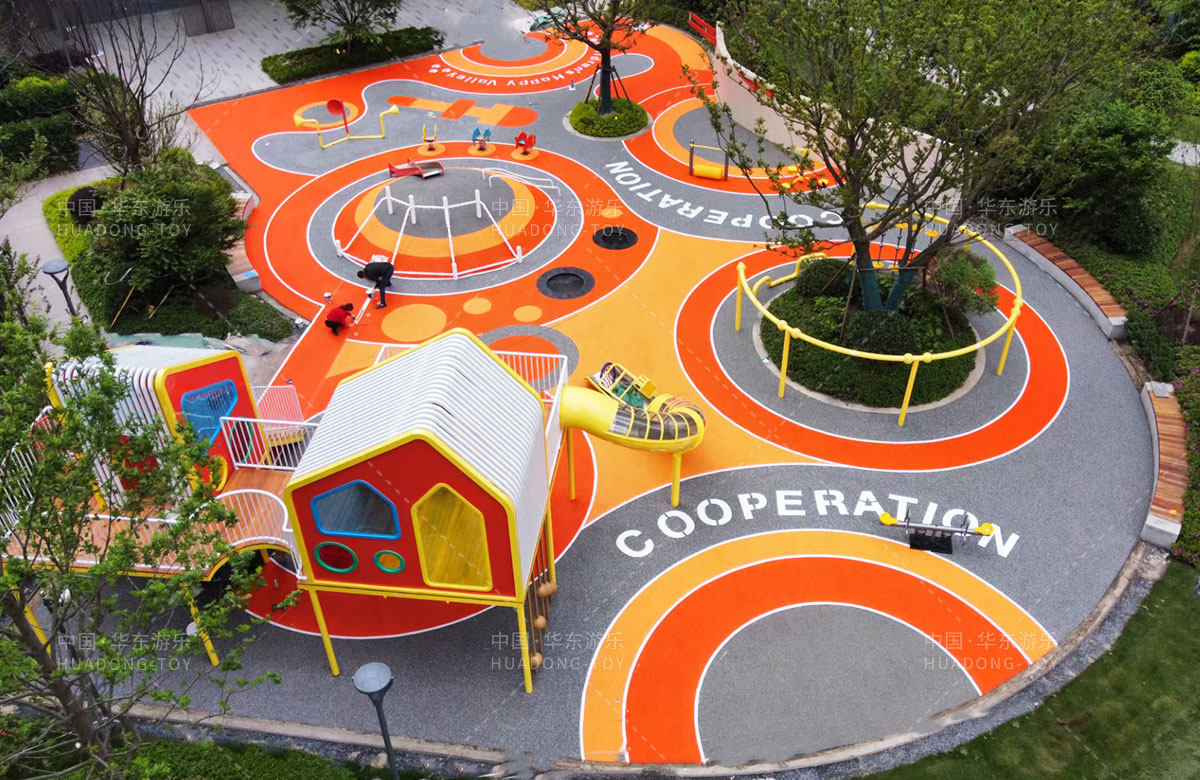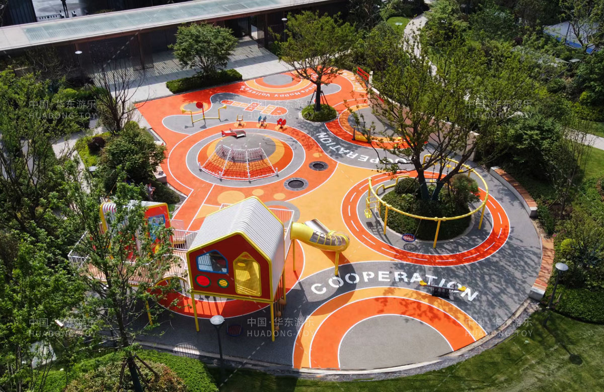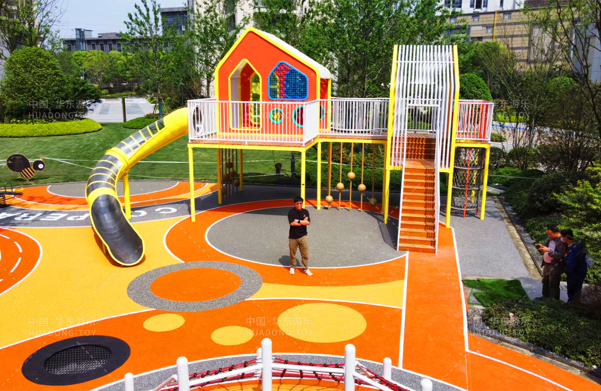 江陰朗詩新郡選用的是由華東游樂自主研發(fā)和設(shè)計的以游戲小屋為主題的非標(biāo)定制游樂設(shè)備,該設(shè)備具備了攀爬桿、大型滑梯、卡通的造型、靚麗的顏色深受小朋友的喜愛,同時整個游樂場還設(shè)置了小朋友喜歡的兒童搖搖樂、傳聲筒、兒童蹺蹺板、攀爬網(wǎng)、不銹鋼滑梯等游樂設(shè)備。
