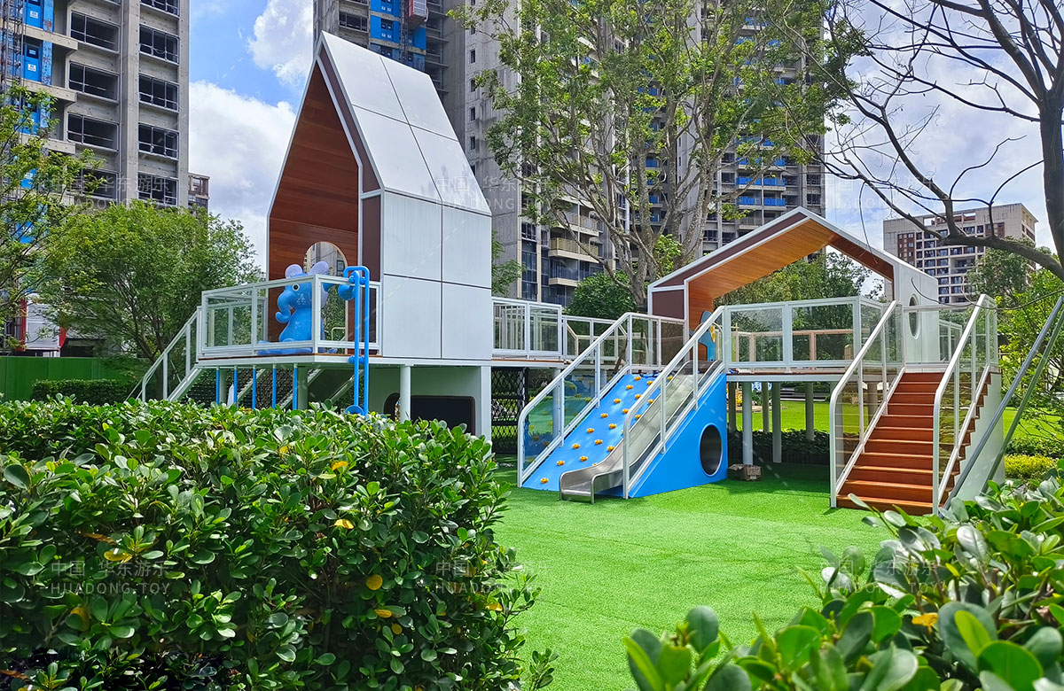 廣東惠州潤溪花園是一個高端的生活小區(qū),為了更好的 服務生活中當?shù)氐木用瘢晟菩^(qū)的配套設施,該小區(qū)選用的一個以小象的田野樂園為主題的游樂園,齊全的功能、艷麗的顏色深受孩子們的喜愛,同時為了更好的為孩子們提供一個休閑娛樂的場所,整個游樂場還設置了小朋友喜歡的兒童搖搖樂、組合秋千、翻翻樂、攀爬網(wǎng)等游樂器械。