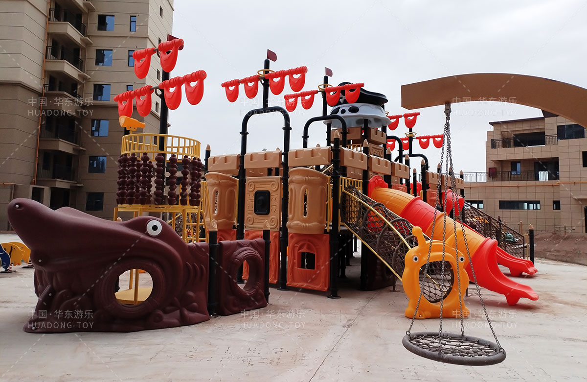 該項(xiàng)目選用的是華東游樂自主研發(fā)和設(shè)計(jì)的以海盜系列為主題設(shè)計(jì)的海盜船系列組合滑梯,該滑梯具備功能齊全、顏色艷麗、使用壽命長(zhǎng)、安全環(huán)保等特點(diǎn),是一款非常受小朋友歡迎的組合滑梯,除此之外還設(shè)置了小朋友喜歡的兒童搖搖樂、秋千等游樂設(shè)備,同時(shí)還專門設(shè)計(jì)了健身區(qū),為生活在當(dāng)?shù)氐娜巳禾峁┝艘粋€(gè)休息、娛樂、遛娃的場(chǎng)所。