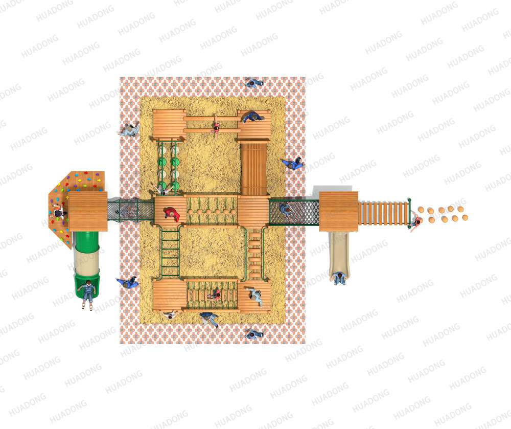 • 木質(zhì)拓展設(shè)施采用天然木材打造,設(shè)計(jì)注重安全與挑戰(zhàn)并重。通過懸掛橋、攀爬網(wǎng)、平衡木等多樣化的障礙元素,旨在提升參與者的體能、平衡感及團(tuán)隊(duì)協(xié)作能力,同時(shí)享受親近自然、挑戰(zhàn)自我的樂趣。