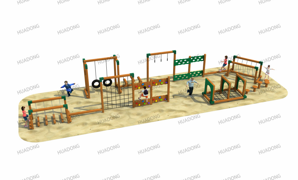 木質(zhì)拓展設(shè)施采用天然木材打造,設(shè)計(jì)注重安全與挑戰(zhàn)并重。通過(guò)懸掛橋、攀爬網(wǎng)、平衡木等多樣化的障礙元素,旨在提升參與者的體能、平衡感及團(tuán)隊(duì)協(xié)作能力,同時(shí)享受親近自然、挑戰(zhàn)自我的樂(lè)趣。