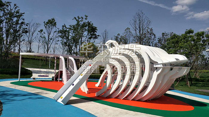 華東游樂貴州貴陽龍里案例是一個以鯨魚為主題的綜合性項目,內(nèi)置了腳踏噴泉,不銹鋼滑梯、秋千、鉆洞等游樂設(shè)備。