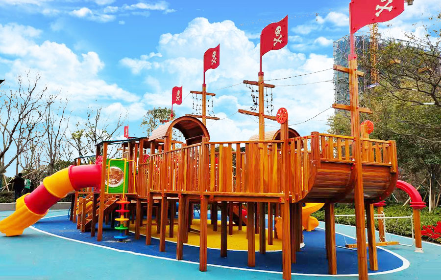 非標(biāo)木制滑梯組合案例采用海盜船的設(shè)計主體為原型設(shè)計,增加了大型滑梯組合以及攀爬、鉆洞等功能,整個主體設(shè)備采用木制結(jié)構(gòu),華東游樂生產(chǎn)的木制游樂設(shè)備具有顏色艷麗、外觀漂亮,實(shí)用性強(qiáng)、經(jīng)久耐用、安全性能好等特點(diǎn),為小朋友的玩耍提供了一個很好的場所。