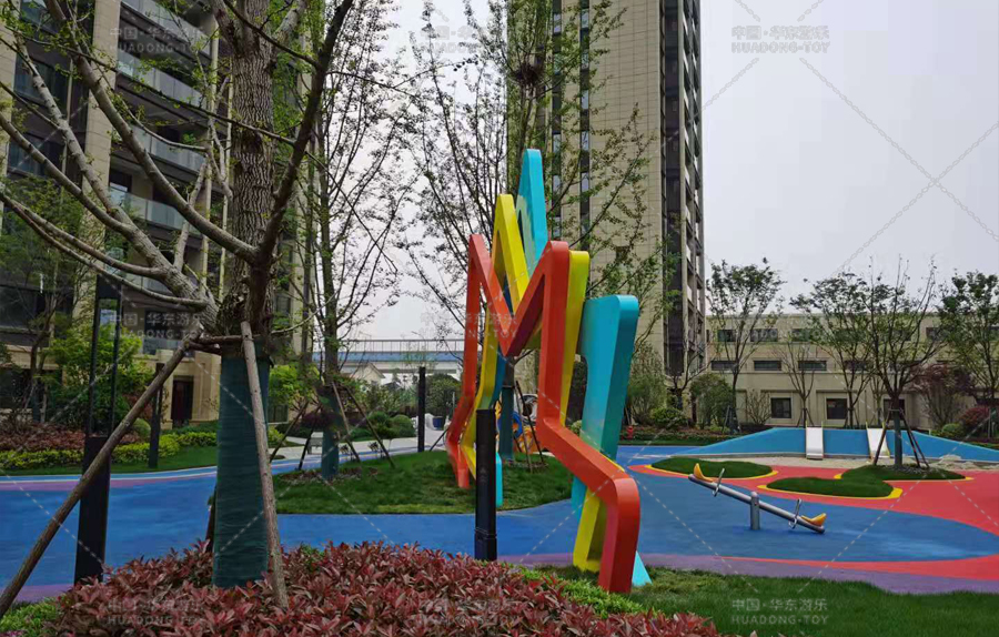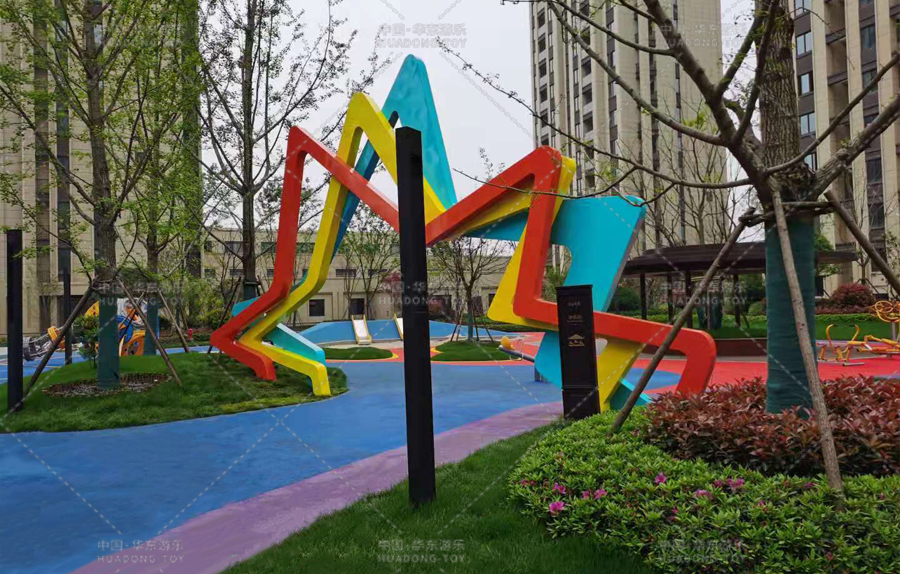 祥生云山新語(yǔ)項(xiàng)目采用的是以星星形狀的門(mén)型為原型而設(shè)計(jì)的游樂(lè)場(chǎng)地,該場(chǎng)地放置了蹺蹺板、微地形,攀爬墻等游樂(lè)設(shè)備。