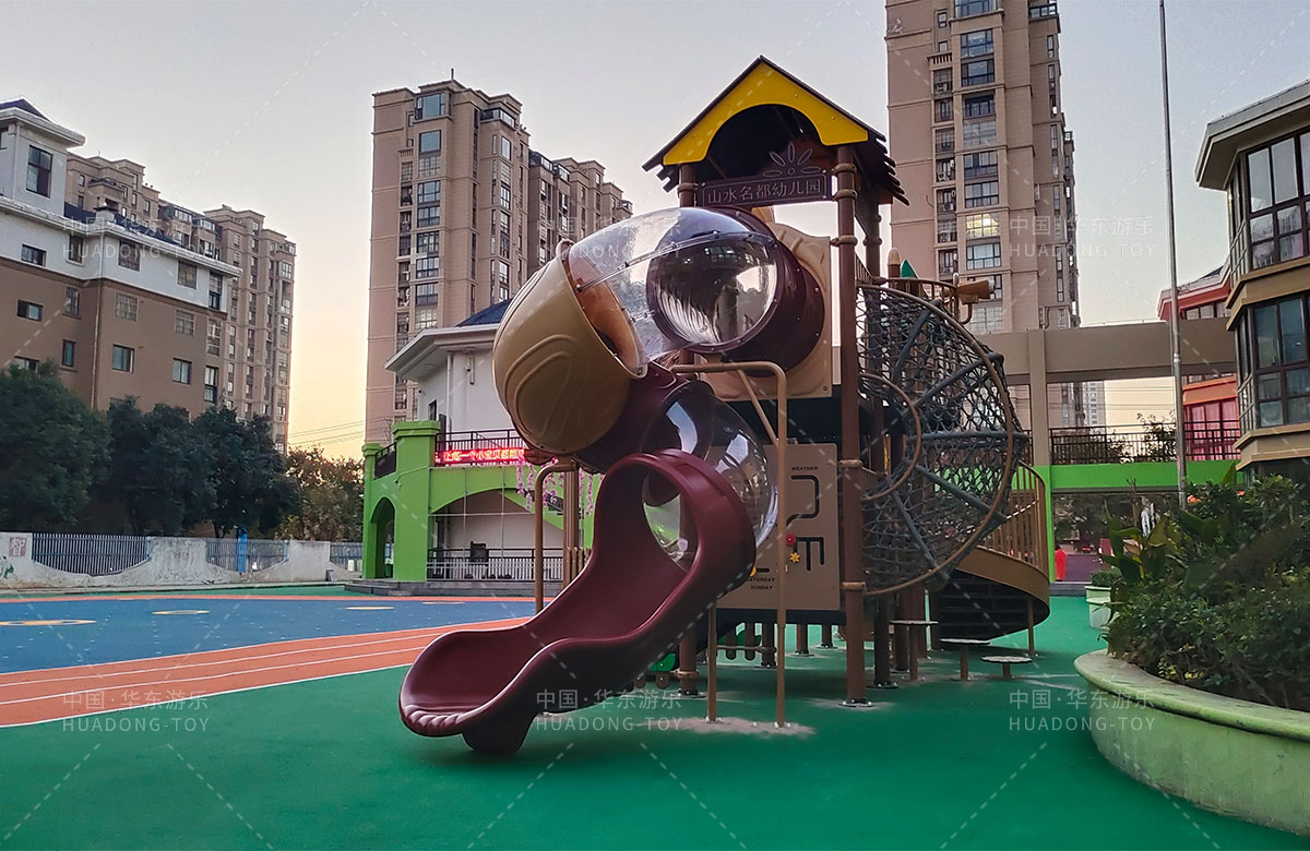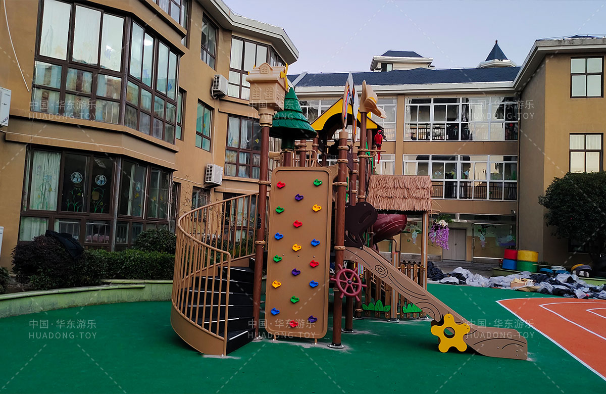 江蘇省淮安市山水名都幼兒園是一家專業(yè)的學(xué)期教育培訓(xùn)機(jī)構(gòu),此次選用的是華東游樂自主研發(fā)和設(shè)計(jì)的通話莊園系列組合滑梯,該設(shè)備具備了攀爬網(wǎng)、攀爬墻、打擊樂器、旋轉(zhuǎn)滑梯等功能,是一款功能齊全、主題鮮明、顏色艷麗、品質(zhì)優(yōu)越的綜合性游樂設(shè)備,非常適合幼兒園。
