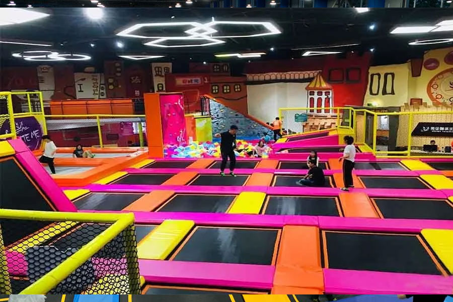 選擇一個(gè)交通便利、人流量大的場地,同時(shí)考慮場地的面積和高度,以滿足不同蹦床項(xiàng)目的需求。在規(guī)劃過程中,要合理布局各個(gè)區(qū)域,包括蹦床區(qū)、休息區(qū)、更衣區(qū)、餐飲區(qū)等,確保游客能夠享受到便捷、舒適的體驗(yàn)。