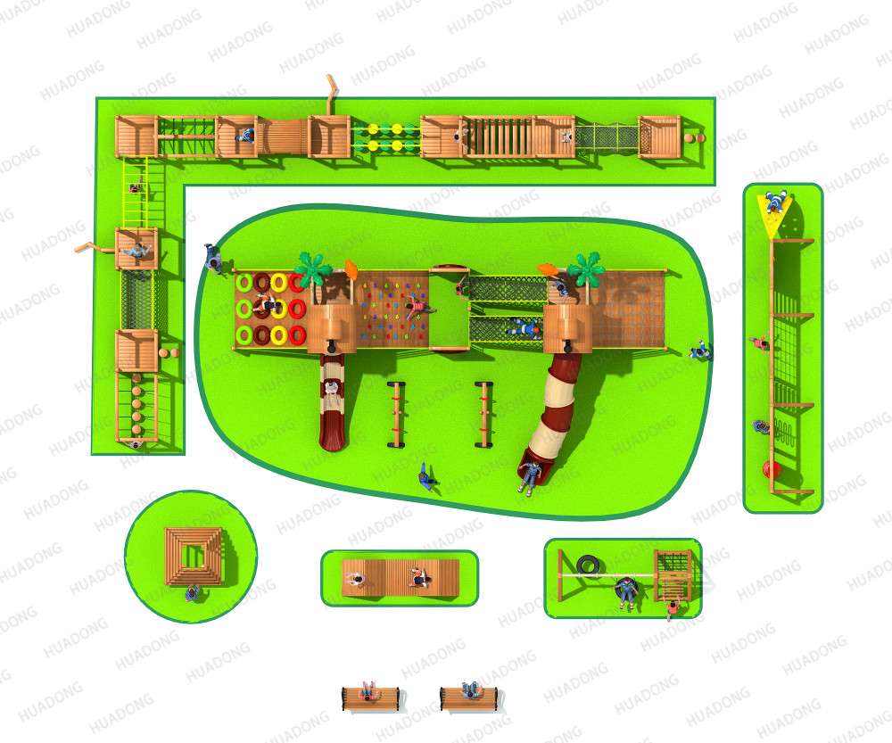 木質(zhì)拓展設(shè)施采用天然木材打造,設(shè)計(jì)注重安全與挑戰(zhàn)并重。通過懸掛橋、攀爬網(wǎng)、平衡木等多樣化的障礙元素,旨在提升參與者的體能、平衡感及團(tuán)隊(duì)協(xié)作能力,同時(shí)享受親近自然、挑戰(zhàn)自我的樂趣。